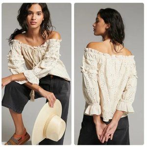 Anthropologie Seen Worn Kept Jane Eyelet Lace Off-the-Shoulder Boho Blouse
