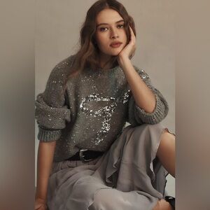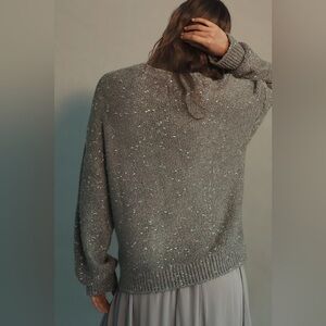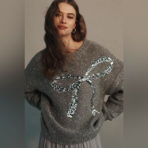 Anthropologie Sequin Bow Crew Neck Sweater Size XL NWT