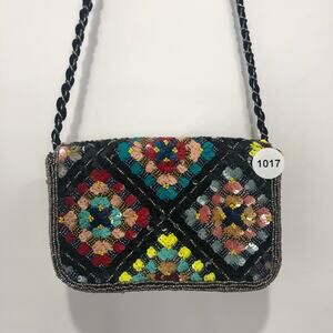 Anthropologie Sequin Black Multi Color Clutch Purse