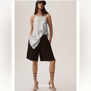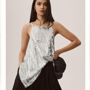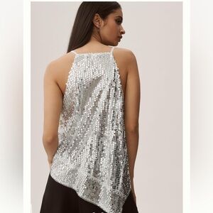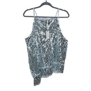 Anthropologie Sequins Halter Tank Blue Asymmetrical XL NWT