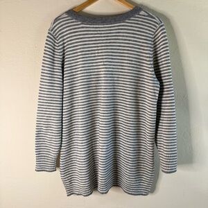 Anthropologie Serena Striped V-neck Gray Sweater Size Large