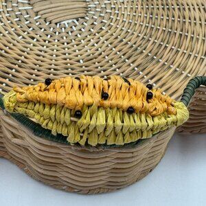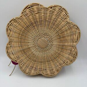 Brand new with tags. Never used but two of the decorative "flowers" have broken off but still usable and a beautiful basket/tray.