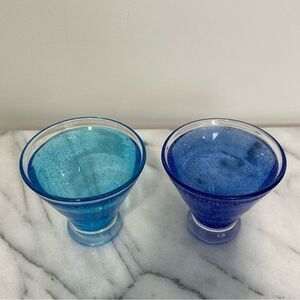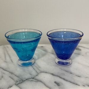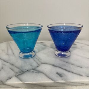 Anthropologie Set of 2 Blue & Aqua bubble cocktail martini stemless glasses