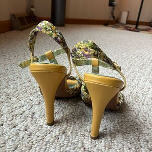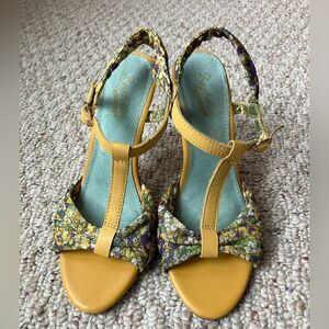 Anthropologie | Seychelles vintage style heels with botanical silk | size 6