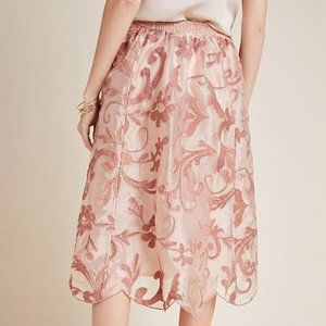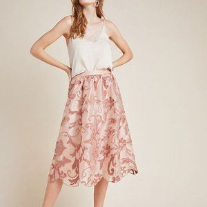 Size M pink Anthropologie Shannon Embroidered Midi Skirt. Feminine embroidered florals lend this midi skirt a dreamy, delicate finish. NWT.