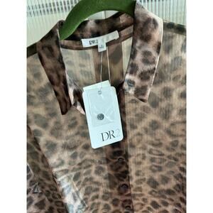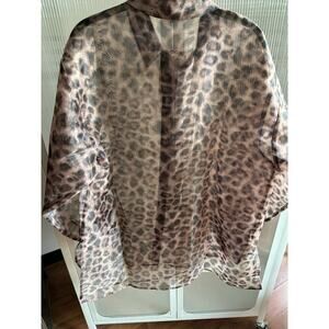 Anthropologie Sheer Animal Print Oversized Blouse Size Med