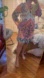 Sheer blouse with a colorful floral print. Features shades of blue, pink, and orange.