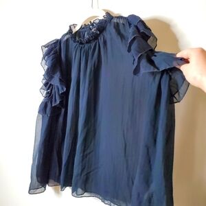 Anthropologie Sheer Chiffon Ruffle Blouse Top