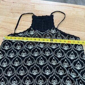 Anthropologie Sheer Embroidered Mini Dress Size S Black Sleeveless Ruffle Flowy
