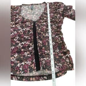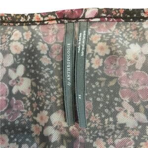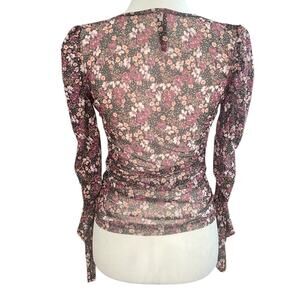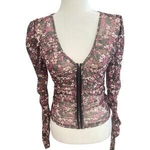 Anthropologie Sheer Mesh Purple Floral Dainty Ditzy Print Ruched Blouse- Xs