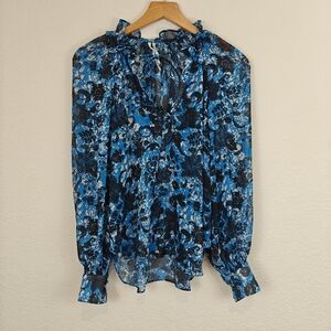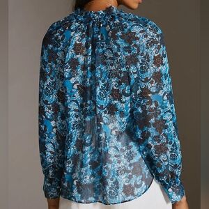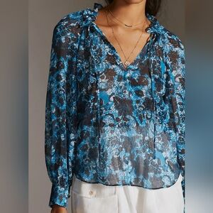 Anthropologie Sheer Printed Peasant Floral Long Sleeve Boho Blouse Size XS