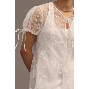 Anthropologie Sheer Short-Sleeve Organza Maxi Dress - New Medium