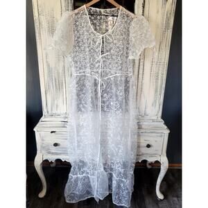This gorgeous Anthropologie dress is elegant and perfect for any cozy occasion. Crafted from sheer white nylon, this dress features a pullover styling and tie belt for an elegant look.