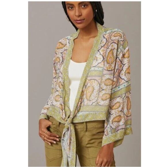 Anthropologie Sheer Tie Front Crop Kimono, One Size. Excellent pre-loved condition. No stains, holes, runs, pulls or defects.