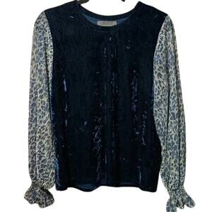 Anthropologie Sheer Velvet Long Sleeve Navy Animal Print top Medium