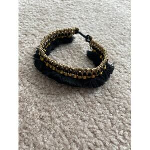 Anthropologie Shiraleah Atlanta Ankle Bracelet Gold Black Tassel Anklet