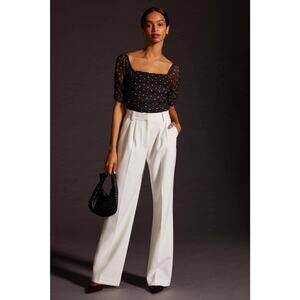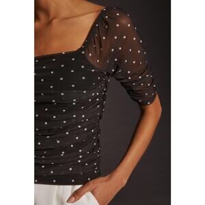 Anthropologie Shirred Mesh Polka Dot Top - New - Size XL