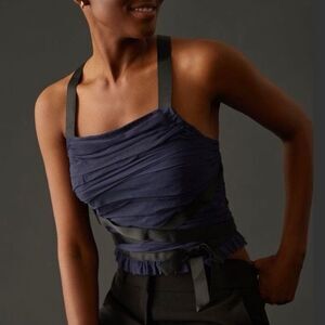 Anthropologie Shirred Tulle Royal Blue Tank Top Size small