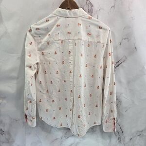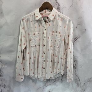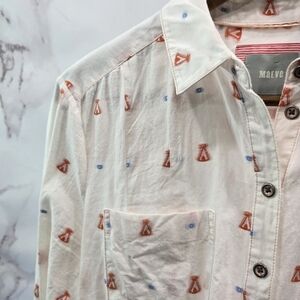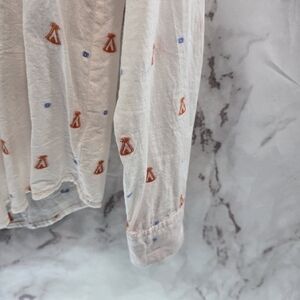 Anthropologie Shirt Womens 4 White Button Tepee Tipi Embroidered Maeve Miette