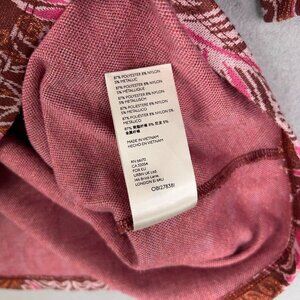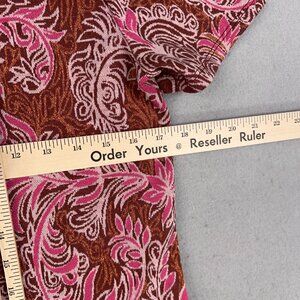 This so-soft Anthropologie tee fuses timeless paisley and botanical motifs, bringing playful elegance to all your seasonal looks. Made from a blend of polyester, nylon, and metallic threads, it has a comfortable feel with a subtle sparkle. The design features a vibrant red color with intricate paisley and botanical patterns. It has short sleeves, a round neck, and a simple pullover style.