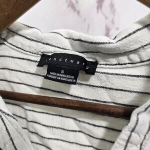 Anthropologie Shirt Womens Small White Black Boxy Button Crop Knot Tie Sanctuary