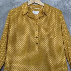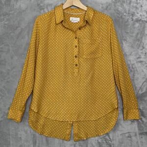Anthropologie Shirt Womens Small Yellow White Embroidered Button Down Wool Blend