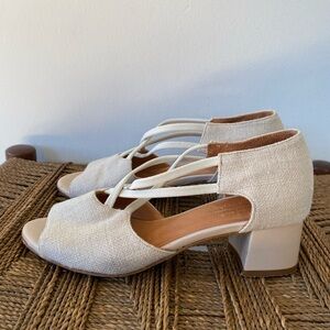 Anthropologie Shoes Women’s 36 Naguisa Yerma Natural Linen Peep Toe Sandals Heel