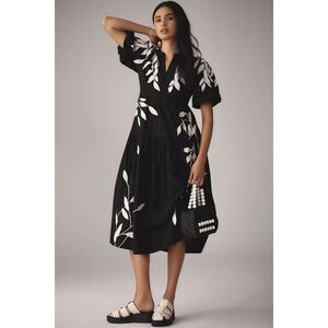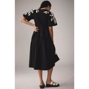 Anthropologie Short-Sleeve Embroidery Appliqué Midi Dress Medium M NEW