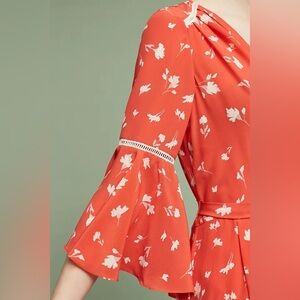 Anthropologie Shoshanna Millie 100% Silk Floral Flare Sleeve Midi Dress 4 Boho