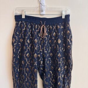 Anthropologie Siddah Sequin Tapered Leg Drawstring Waist Blue Pants Women Size S