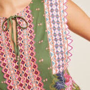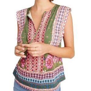 Anthropologie Sigrid Green Orange Embroidered Top XS