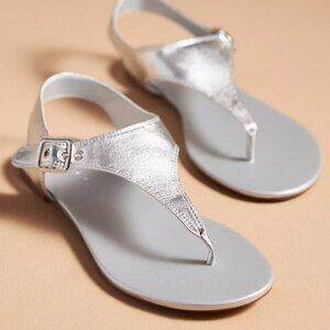Anthropologie Silent D Aleen Sandals in Silver Leather Sz US 7-7.5 / EU 38 NEW