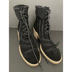 Anthropologie Silent D Bestie Bootie Black Heeled Suede Crocheted