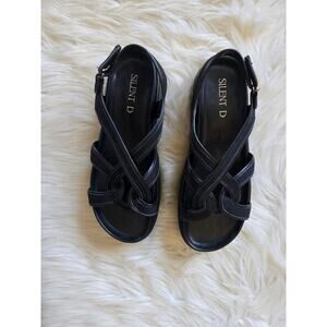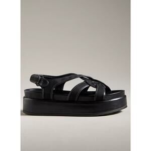 The Anthropologie Silent D Black Platform Sandals are a stylish and versatile addition to any wardrobe. Known for their contemporary design and comfortable wear, these sandals feature a sleek black finish that effortlessly complements a variety of outfits, from casual jeans to summer dresses. The platform provides a subtle lift, adding height without compromising on comfort, making them perfect for all-day wear.