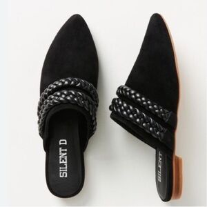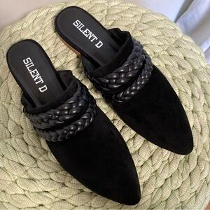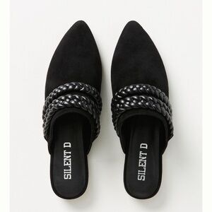 Anthropologie Silent D Gideota Black Suede Braided Point Toe Flat Mules NWOB