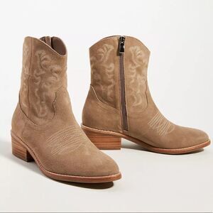 Anthropologie Silent D Zofie Suede Western Ankle Boot in Beige US 7