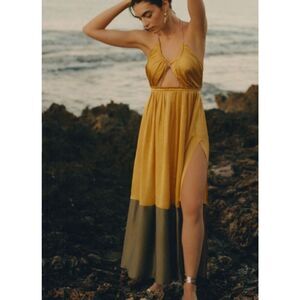 Anthropologie Silk Colorblocked Maxi Dress Gold Size 0 Nwot