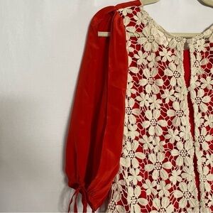 Anthropologie Silk Stitch & Knot Mixed Media Floral Crochet Back Button Blouse