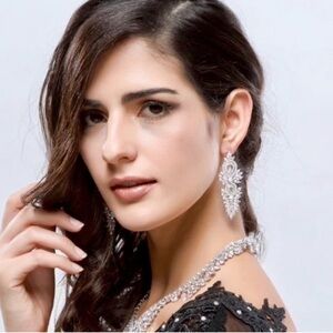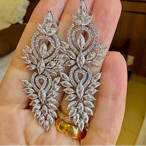 Anthropologie Silver Cubic Zirconia Wedding Earrings, Bridal, Dangle,Anniversary