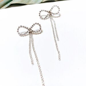 Anthropologie Silver Rhinestone Bow Earrings