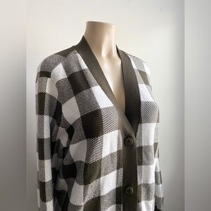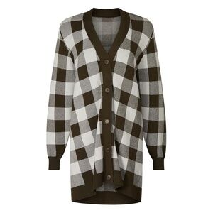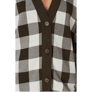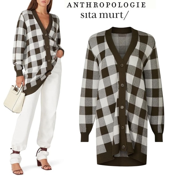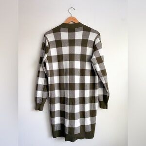 Anthropologie Sita Murt Olive Green White Checker Long Sweater Cardigan Oversize