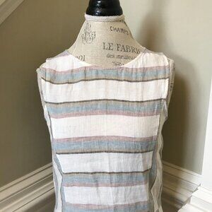 Women's Sita Murt Peplum Stripe Top / Blouse in a size 40 / Small. Neutral colors make this go to linen top perfect for any occasion. Originally $195 fast same day ship!