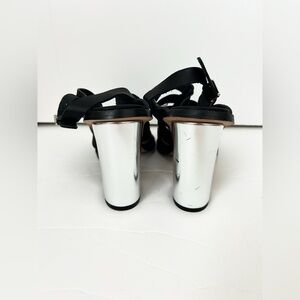 Anthropologie Sixty Seven Black and Silver Leather Block Heels Size 38