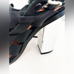 Anthropologie Sixty Seven Black and Silver Leather Block Heels Size 38