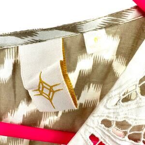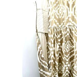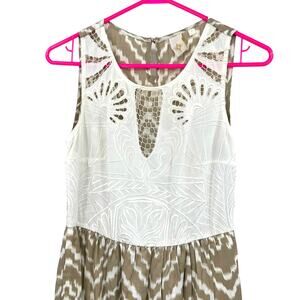 Anthropologie Size 0 Sleeveless Lace Embroidered Maxi Dress Tan & White Pattern