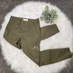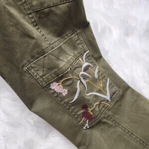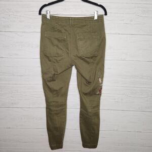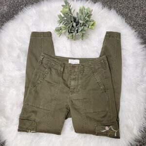 Anthropologie Size 26 Green Austen Embroidered Utility Pants