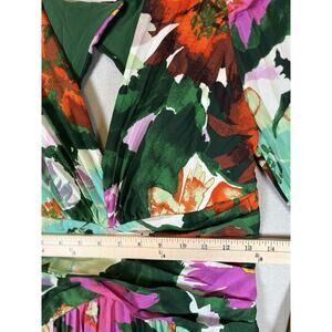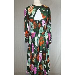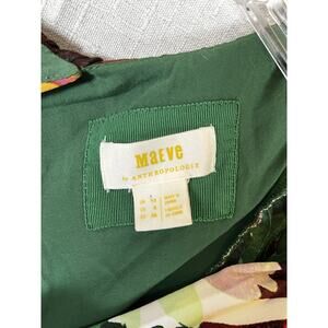 Anthropologie Size 6 Maeve Pleated Long Dress V Neck Green Floral Wedding Date
