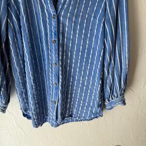 Anthropologie Size 8 Medium Blue Striped Viscose Linen Blend Button Up Long Slv