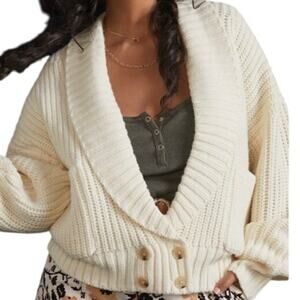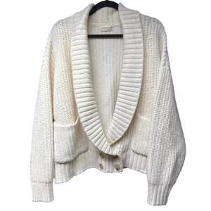 Anthropologie Size Large Deep V Cardigan Sweater Cream Wool Blend Oversized