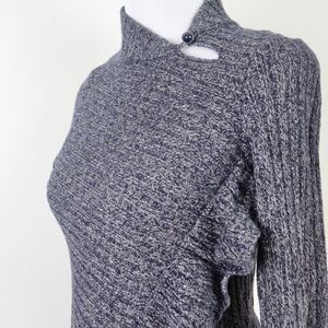 Anthropologie Size S Cascading Ruffles Asymmetrical Sweater Gray